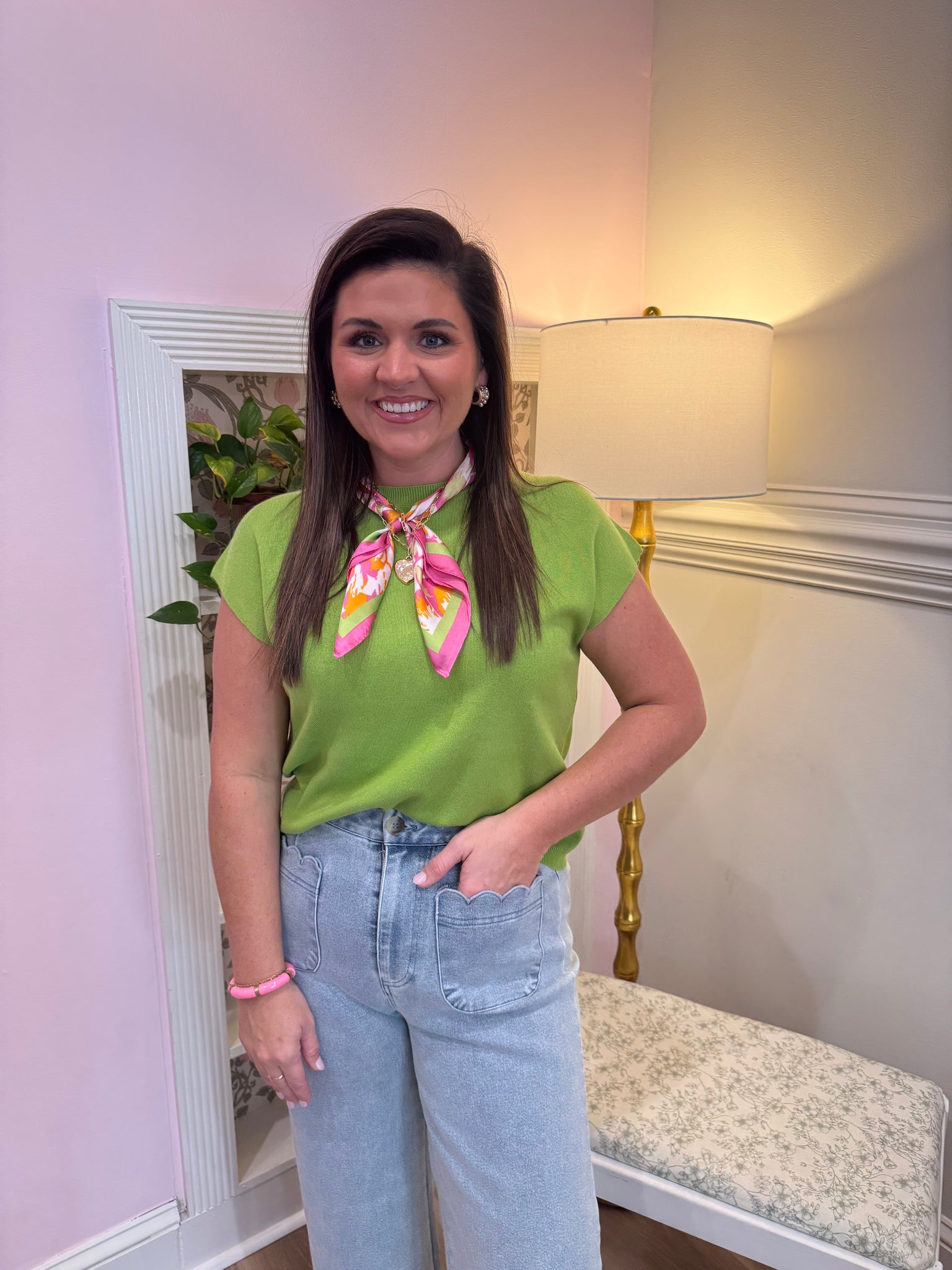Solid cap sleeve knit top featuring round neck. Unlined. Knit. Non-sheer. Lightweight.