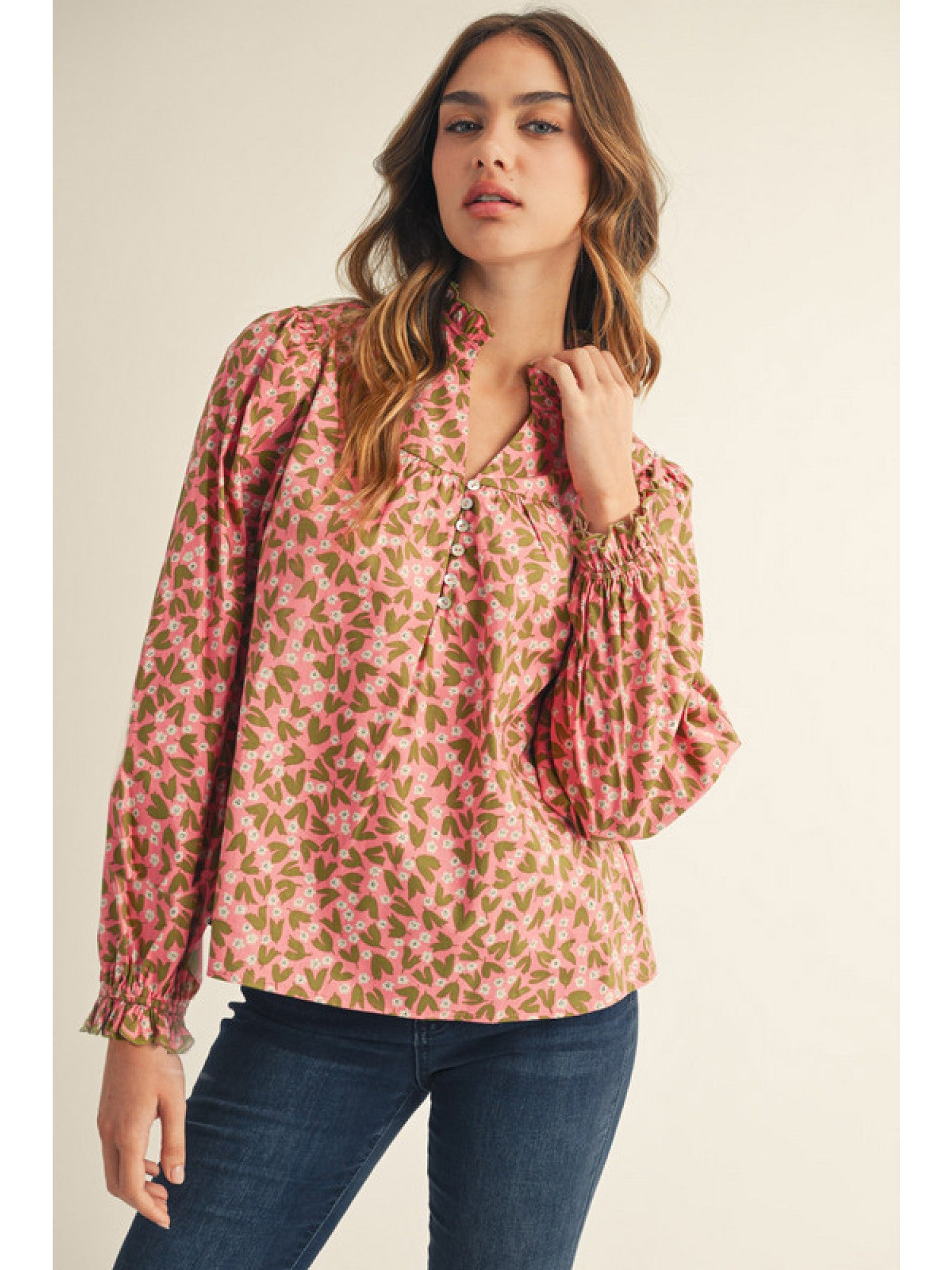 PINK AND OLIVE FLORAL TOP