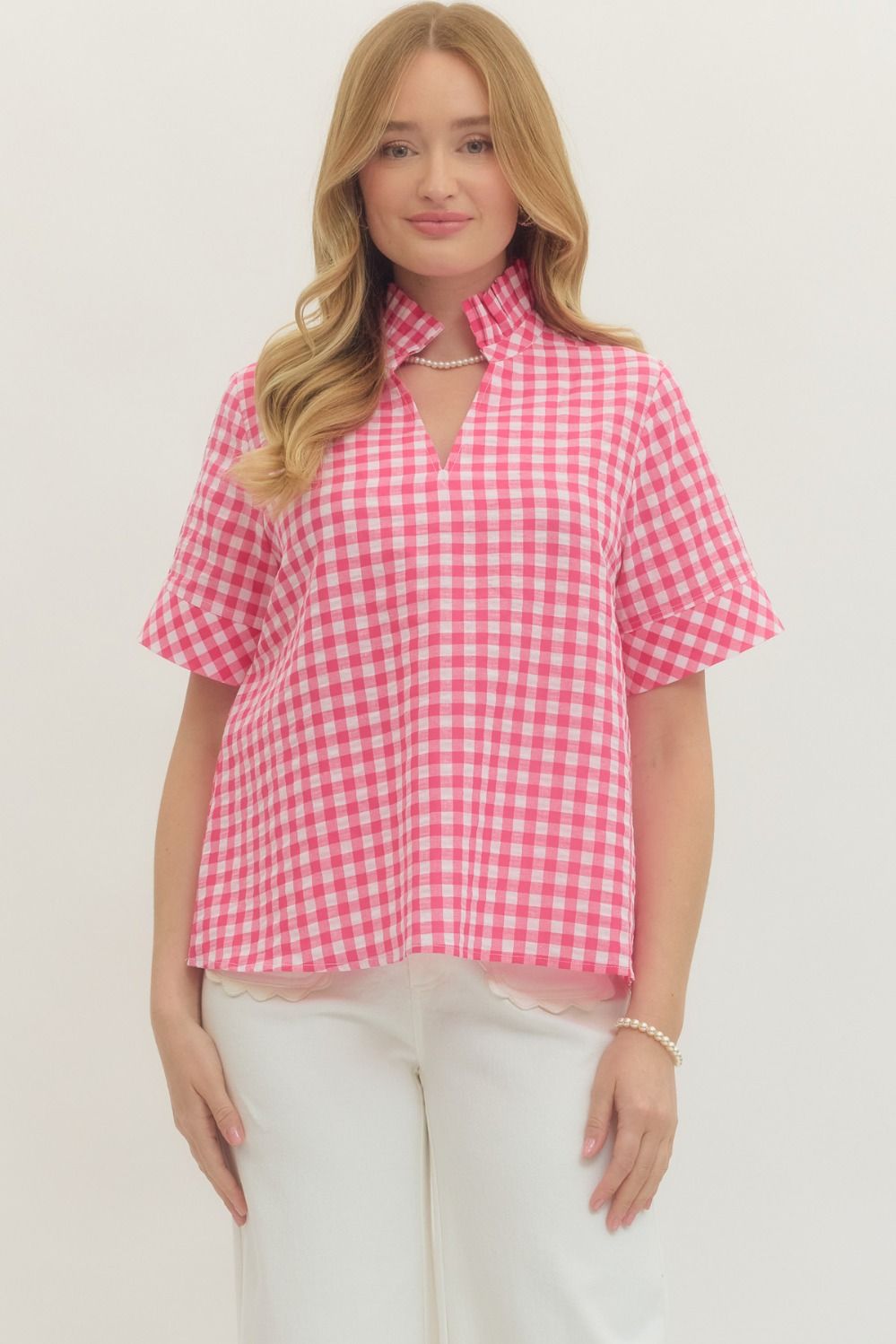 PINK GINGHAM RUFFLE TOP